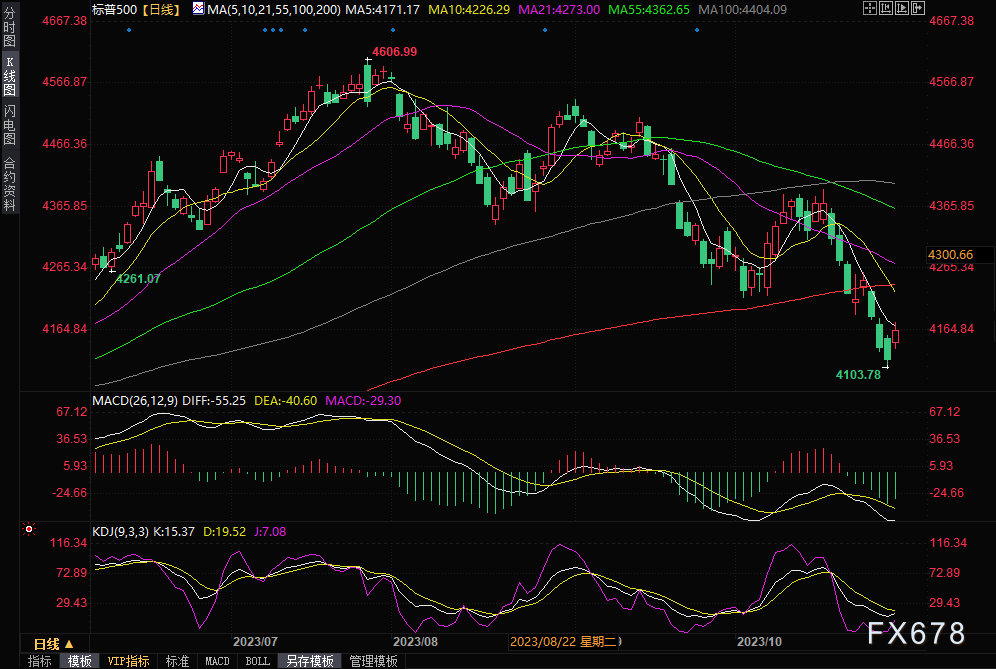 由于投资者已经考虑到较长时间内较高利率的前景,近来股票和债券两类资产都受到了打击。十年期美国国债收益率上周短暂突破了5%,是自2007年以来的首次,尤其引发了对科技股估值的担忧。与此同时,标普500指数和以科技股为主的纳斯达克100指数都进入了修正区域,经历了一定程度的下跌。