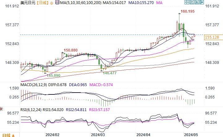 北京时间5月8日11:49 美元兑日元 报 155.11/12。