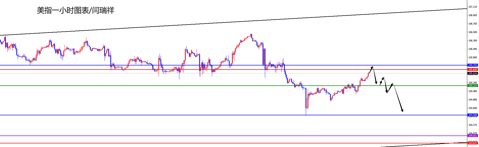 美指105.60-70区间空,防守5美金,目标105.20-104.50