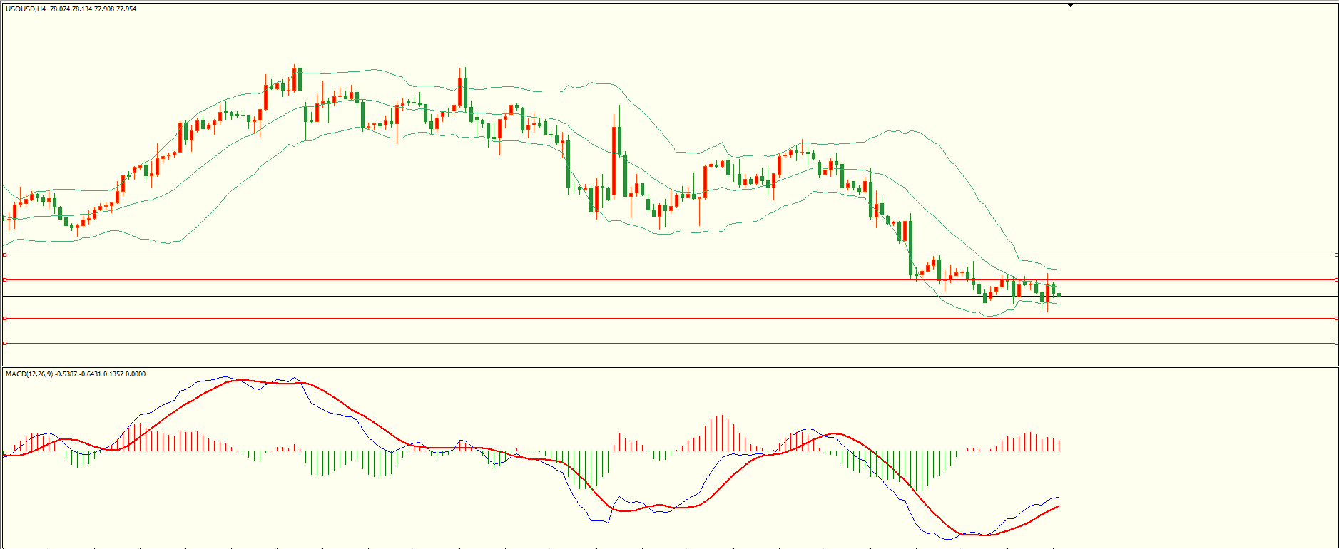 原油昨日亚市开盘后延续走低,纽约盘时段回落至第一支撑下方展开反弹,日线报收上下影线小阴线,目前下方临近前低支撑区,下破后方可打开下行空间,从4H来看,布林中轨偏下,MACD零轴下方运行,日内上方首要阻力78.60-70,第二阻力79.55,下方支撑77.10,76.10-20,保持在第一阻力下方短线有望测试第一支撑。