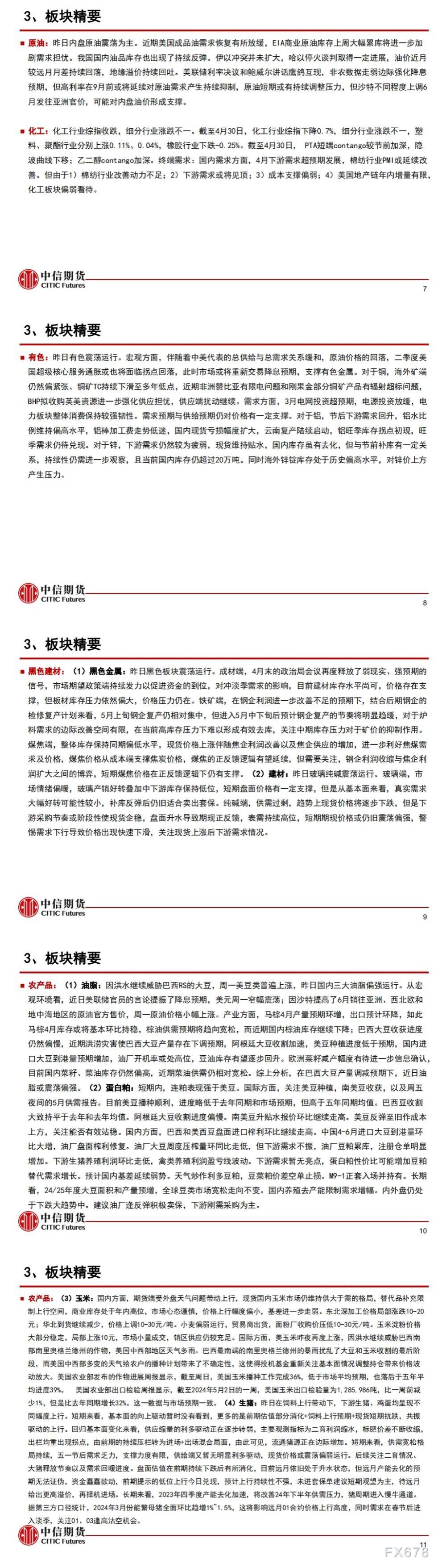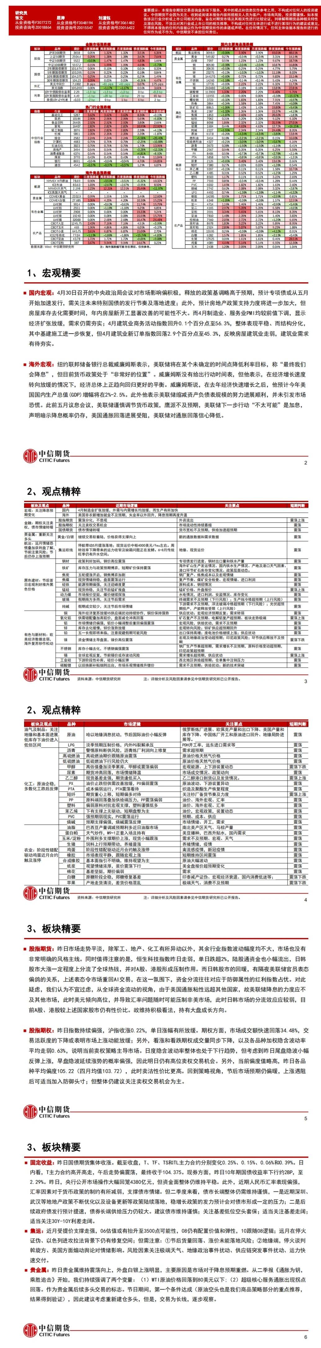 以下为中信期货今日晨报对股指、国债、贵金属、原油能源化工、有色金属、螺纹钢材焦炭黑色系玻璃纯碱等建材、玉米生猪油脂蛋白粕等农产品等期货的操作建议和提醒。