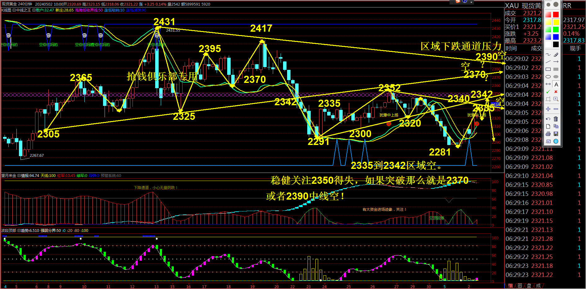 再三提示目前黄金波动大,你不要去追求什么中线趋势,每天100美金波动,做好就不错,我们不是不涨,而是不让现在追,首先确认下跌行情继续,下跌通道压力集中2390区域,无非下跌以后技术需要反弹修复,波动幅度太大,没有突破强压继续空目前2320到2326激进继续空,稳健2345参与,至于多目前不去交易,除非调整30到50美金以后再说。今日关注2300和2335的顶底转换,如果破位2300反弹2310顺势追空即可。至于多个人预期在2270参与。