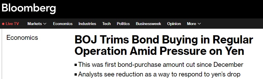 三菱日联摩根士丹利证券公司(Mitsubishi UFJ Morgan Stanley Securities Co)评论称,日本央行减少日本国债购买规模令人意外。