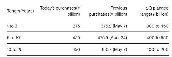 日本央行周一表示,将购买4250亿日元(约合27亿美元)的5-10年期国债,而上个月购买4755亿日元。这是自去年12月底以来首次减少购买规模。