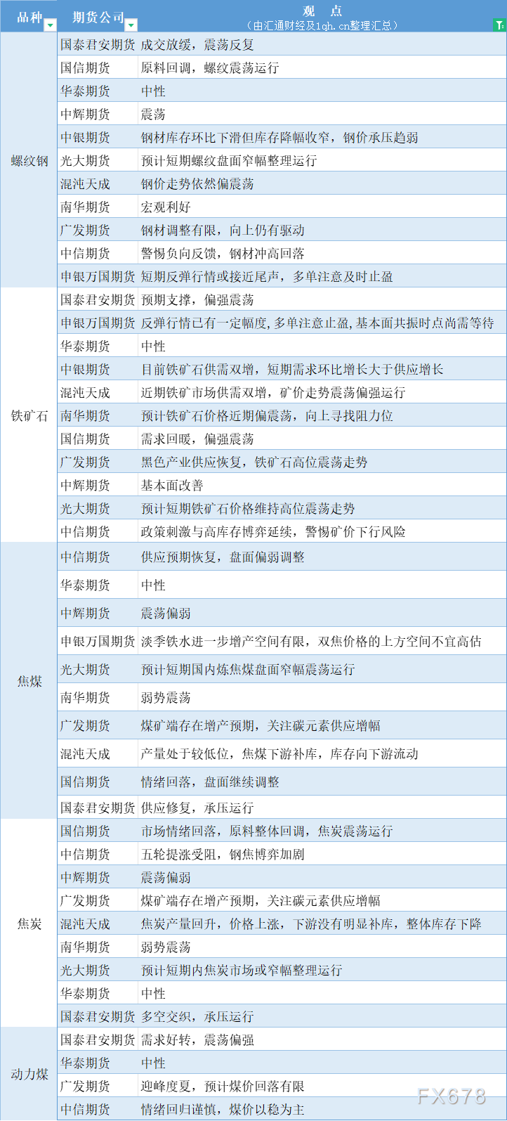 期货公司观点汇总一张图:5月14日黑色系(螺纹钢、焦煤、焦炭、铁矿石、动力煤等)