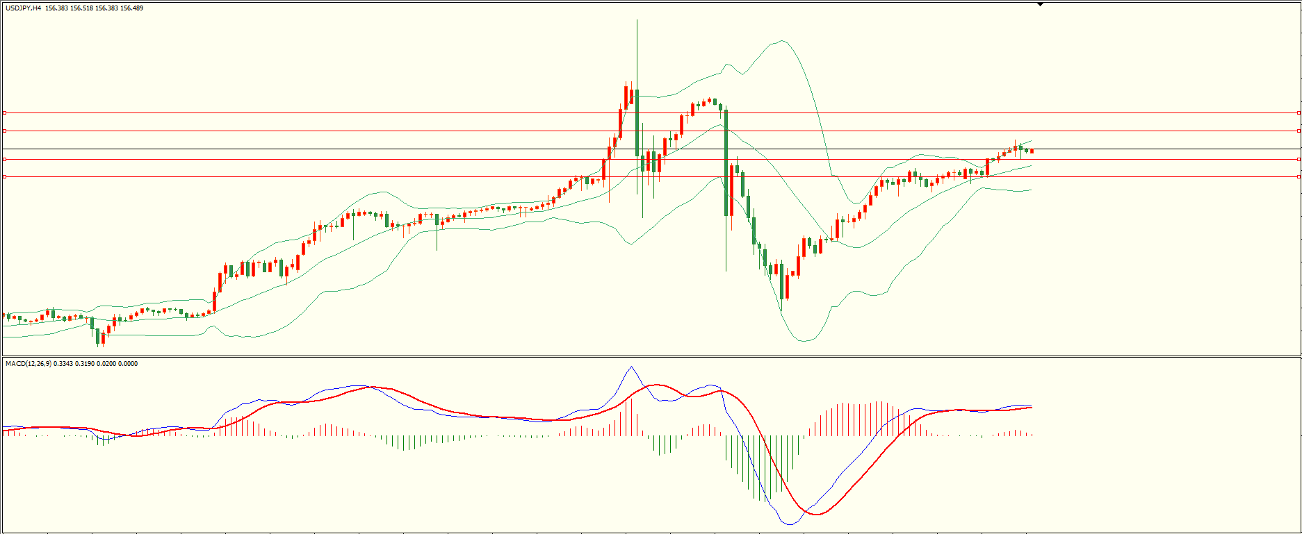 美日昨日亚市开盘后震荡上行,但上方空间受限,日线报收上影线小阳线,总体来看,短线多头略有占优,同时需留意上方阻力区,预防震荡反复,从4H来看,布林中轨偏上,MACD零轴上方运行,日内下方首要支撑156.15-20,第二支撑155.70,上方阻力157.00,157.50-60,保持在第一支撑上方短线有望测试第一阻力。