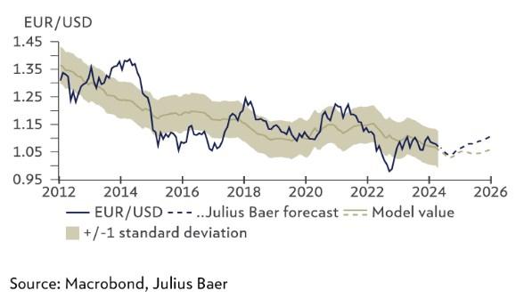 从长远来看,即在美联储降息的环境下,风险偏好保持强劲,Meier 预计欧元兑美元将回到当前水平。