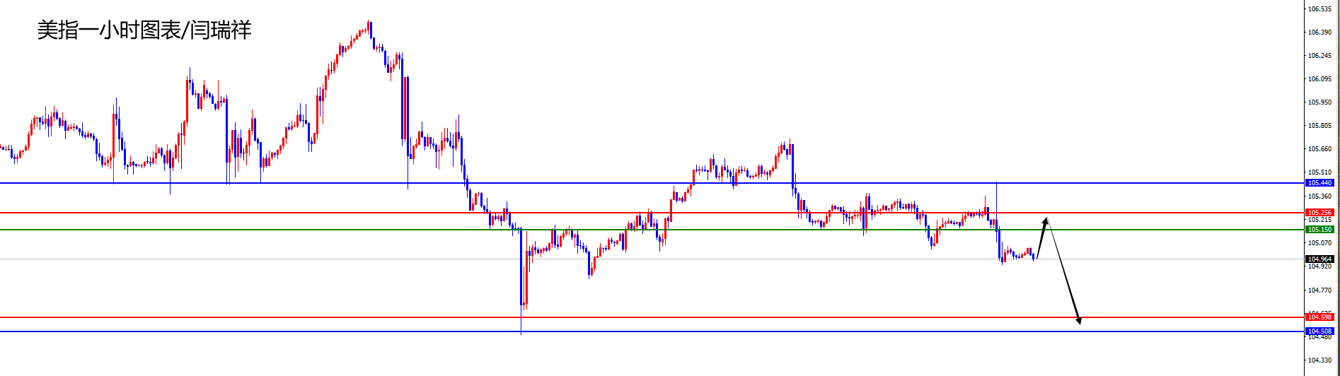 美指105.15-25区间空,防守5美金,目标1104.80-104.50