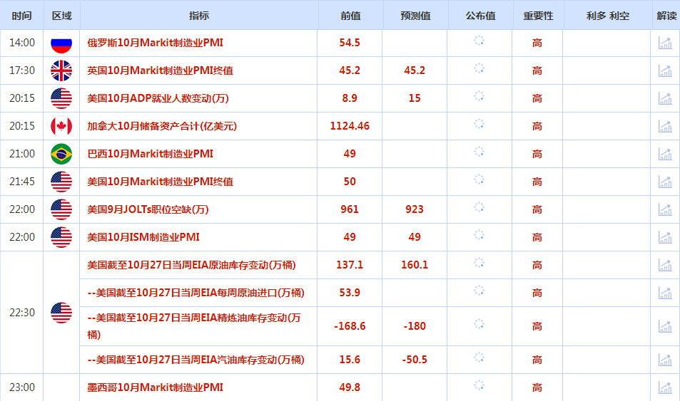 经济消息方面,10月份美国消费者信心跌至5个月低点,而第三季度就业成本意外上升,凸显劳动力市场强劲,可能导致通胀高于美联储目标。