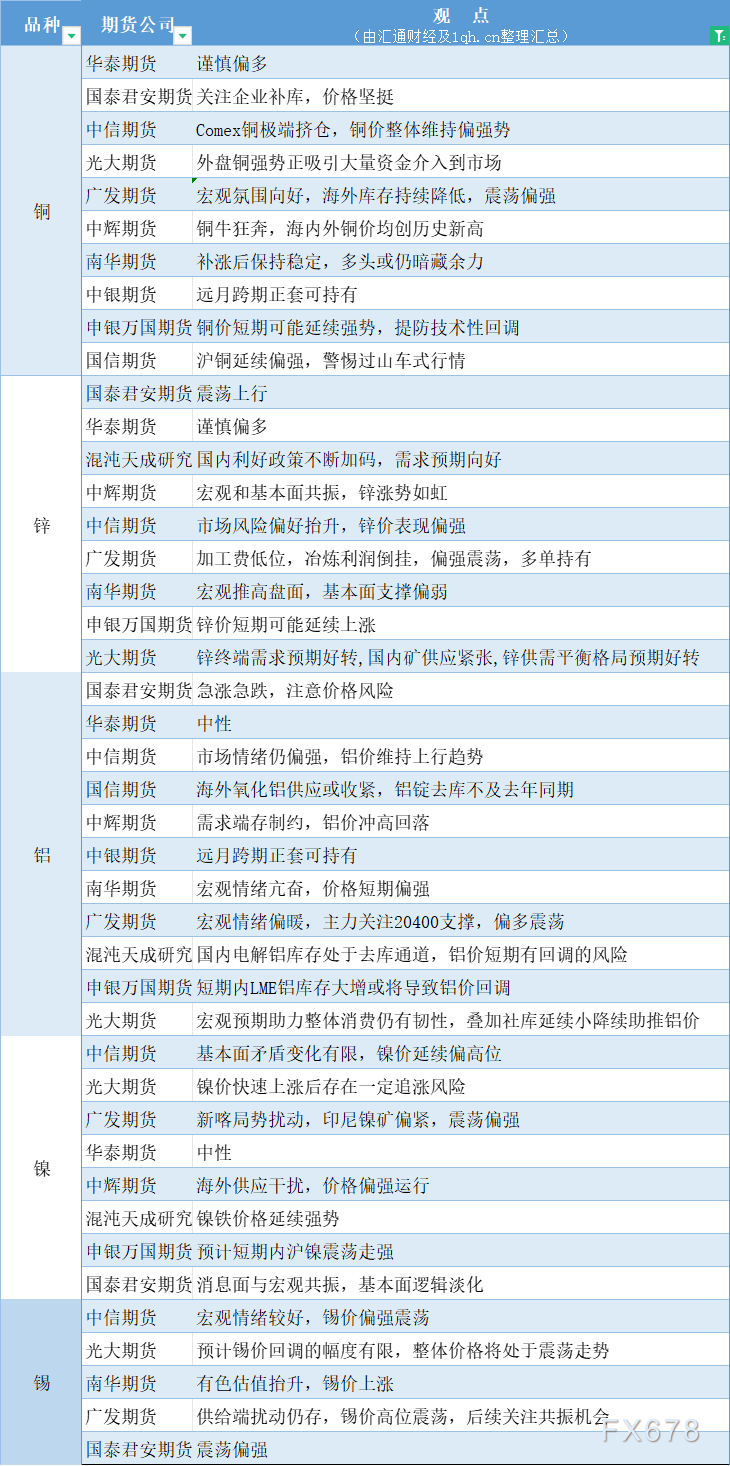 期货公司观点汇总一张图:5月21日有色系(铜、锌、铝、镍、锡等)