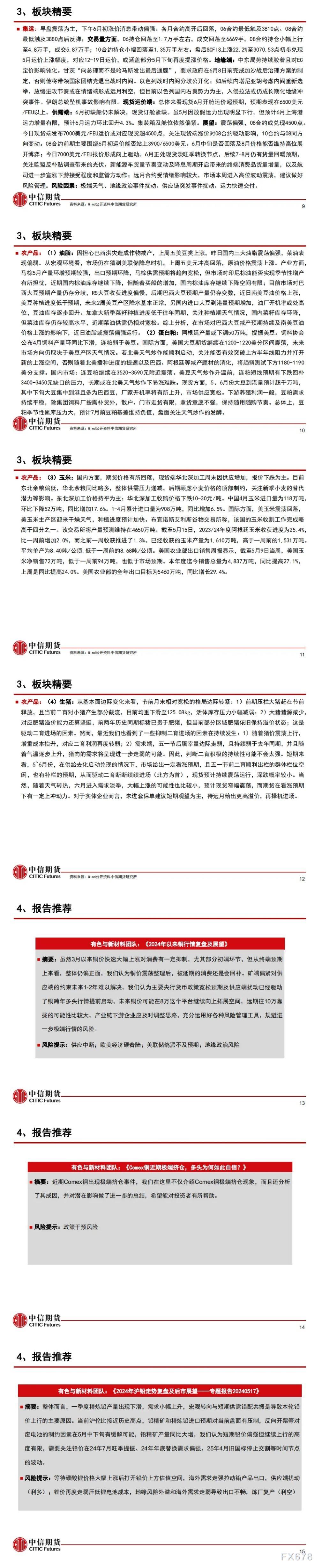 以下为中信期货今日晨报对股指、国债、贵金属、原油能源化工、有色金属、螺纹钢材焦炭黑色系玻璃纯碱等建材、玉米生猪油脂蛋白粕等农产品等期货的操作建议和提醒。