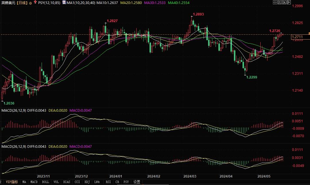北京时间5月22日11:47,英镑兑美元报1.2711/12