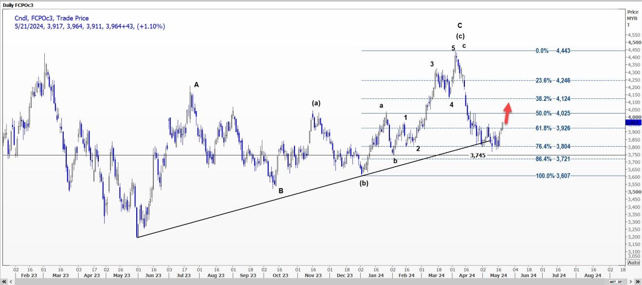 受c浪推动,棕榈油FCPOc3价格可能升至每公吨4002-4025林吉特的区间。