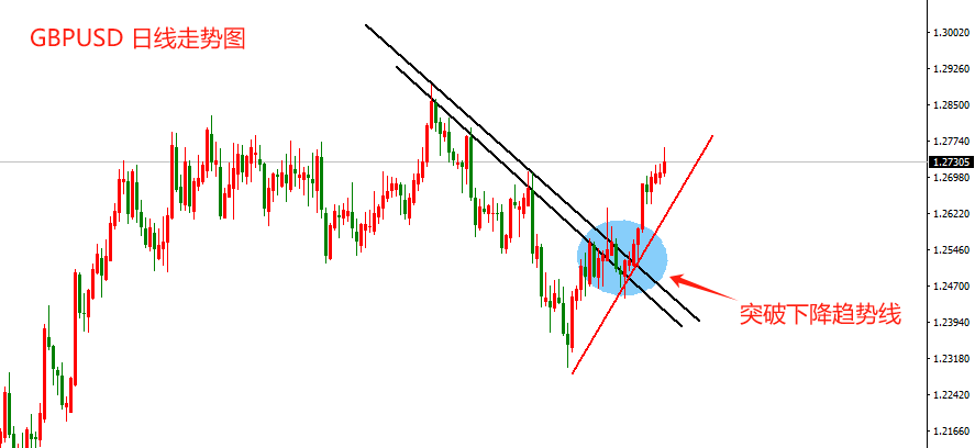 技术角度看,4月22日GBPUSD跌至1.2298阶段性低点,之后启动反弹走势。5月13日,反弹波段正式突破下降趋势线,反弹波段演变为上涨波段。上图已经标注了最新的上涨趋势线(红色线),在该趋势线没有被向下有效跌破之前,涨势大概率将会延续。