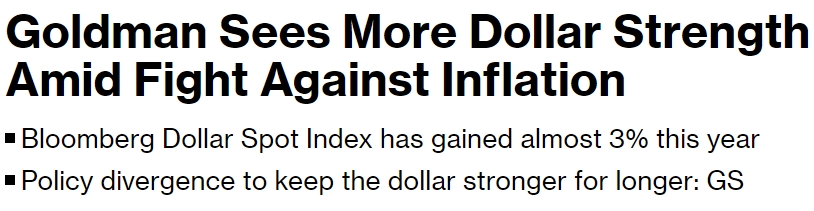 高盛集团表示,若美联储保持利率稳定,而其他国家选择降低借贷成本,美元可能会在更长时间内保持强势。该机构展望,美元在对抗通胀的过程中将进一步走强,彭博美元现货指数今年上涨近3%。