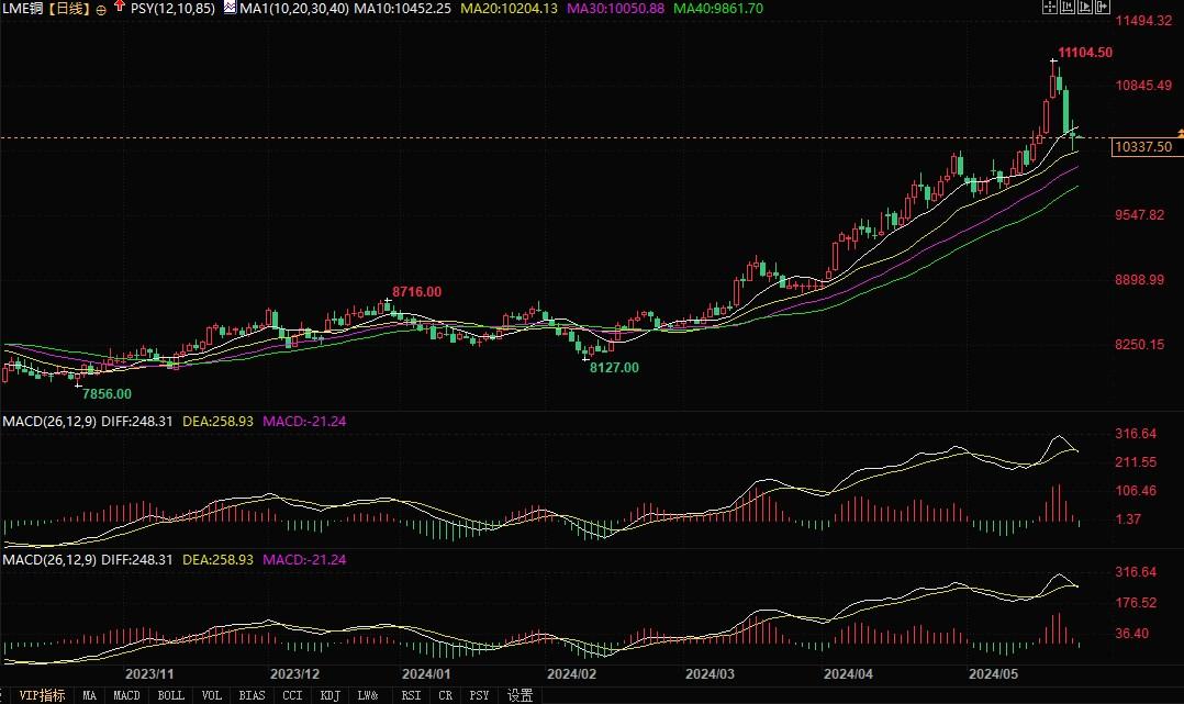 5月23日,市场分析师Andy Farida称:“伦敦金属交易所(LME)的铜价在5月17日周五创下历史新高,这证实了我们对这种红色金属的整体看涨倾向。虽然我们维持这种看涨观点,但我们也注意到势头正在变得有点泡沫化,这是一个温和的提醒,即如果没有一些技术盘整,任何东西都不会一直上涨或一直下跌。”