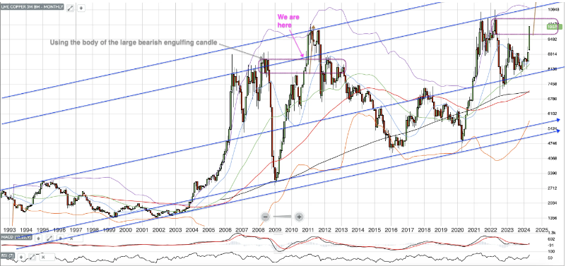 正如LME铜周线图所示(见下文),市场关注的是2010年11月出现的价格结构。当时铜价突破了2008年的历史高点,然后出现了一周的大幅回调,然后又恢复了上行趋势,达到了更高的价格。