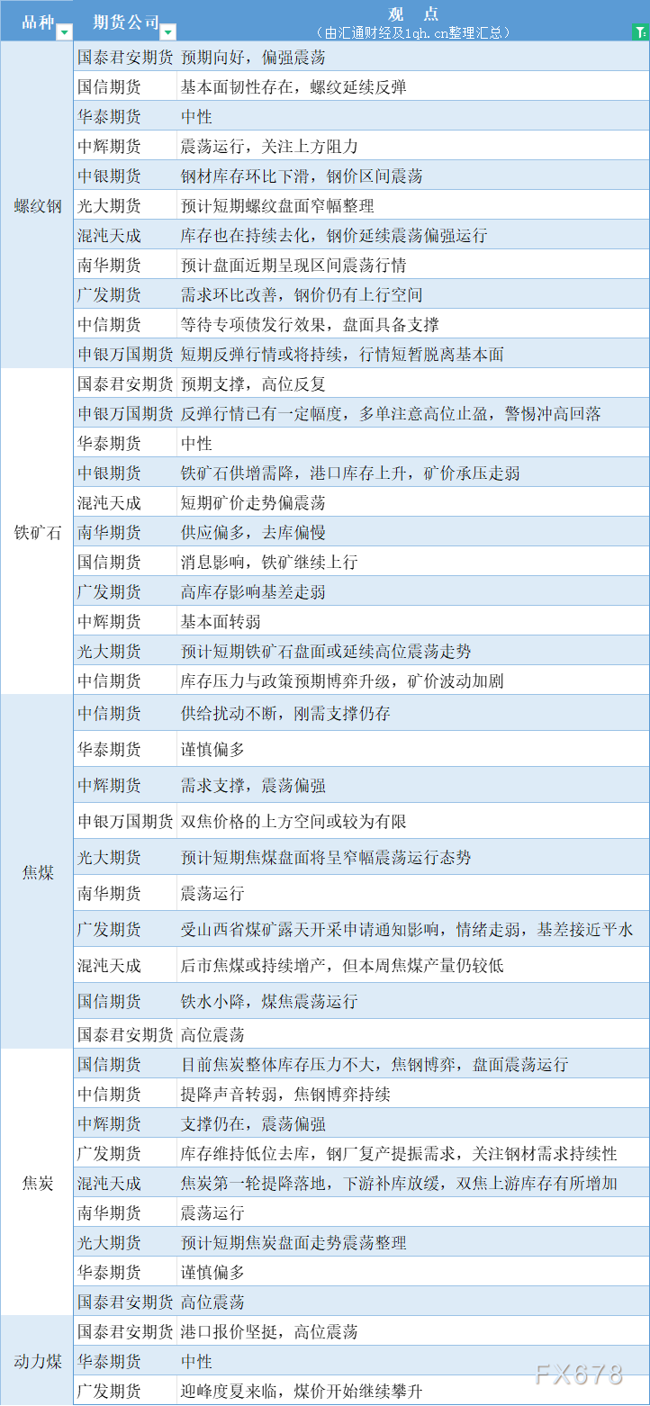 期货公司观点汇总一张图:5月28日黑色系(螺纹钢、焦煤、焦炭、铁矿石、动力煤等)