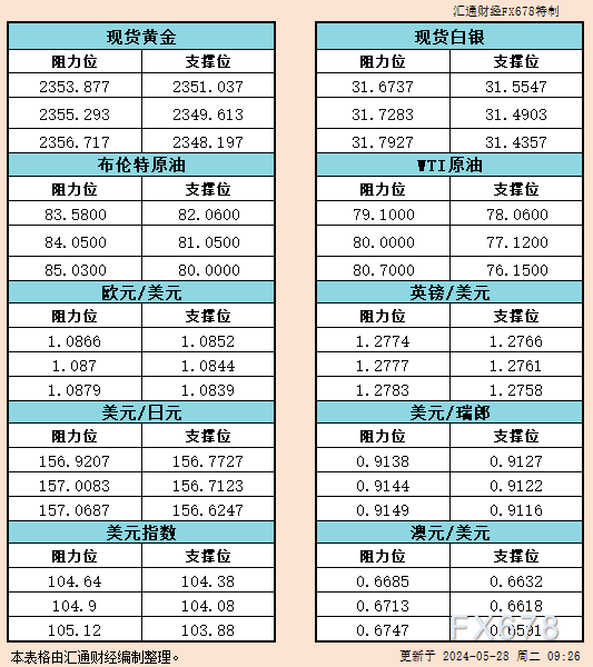 本文提供黄金、原油、美元指数、欧元、英镑、日元、瑞郎、澳元支撑阻力位。