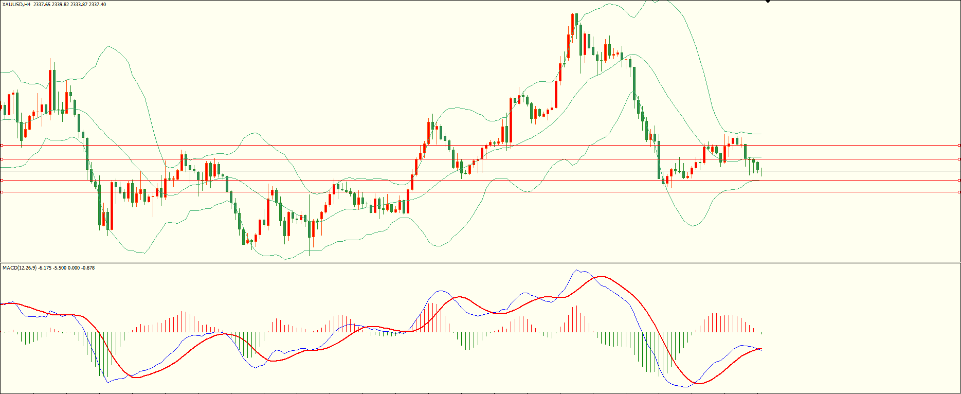 黄金昨日亚市开盘后承压下行,尾盘时段略有反复,日线报收中阴线,从收盘来看,上方阻力犹存,目前下方面临前低支撑区,下破后方可继续,结合4H来看,布林中轨略有走平,MACD零轴下方运行,日内上方首要阻力2345-46,第二阻力2355,下方支撑2330,2322-23,第一阻力在没有收复前短线有望测试第一支撑。