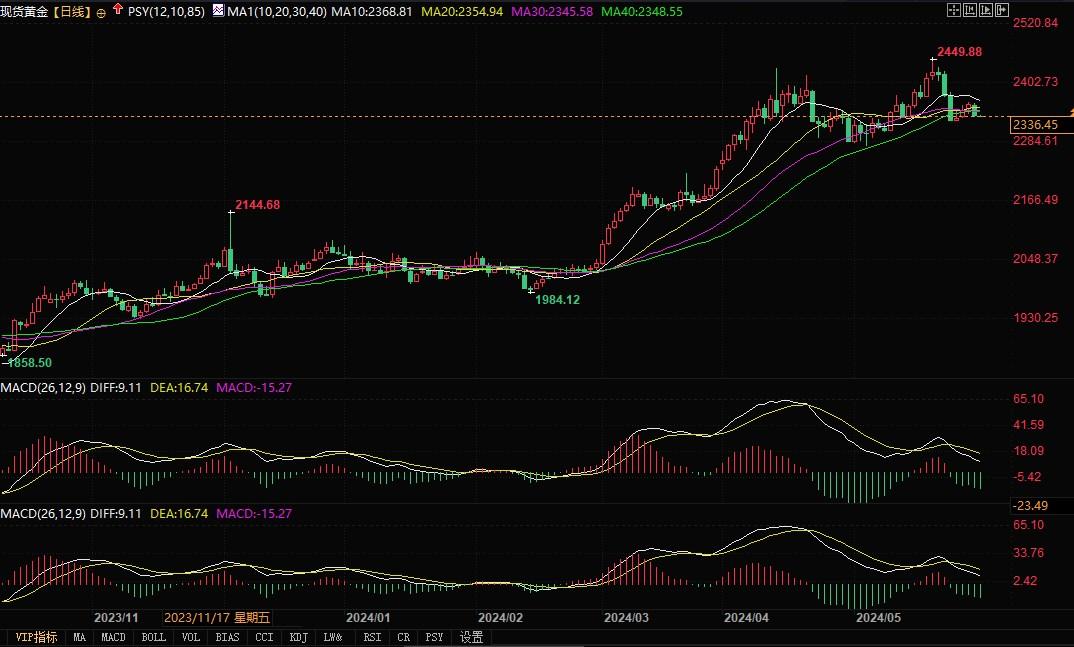 北京时间5月30日9:00,现货黄金报2336.50美元/盎司