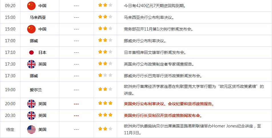 在亚洲,韩国十月份通胀意外加速,强化了央行更长时间维持限制性政策的理由。周四发布的其他经济数据包括马来西亚的货币政策决定和新加坡的采购经理人指数数据。投资者还将关注塔塔汽车有限公司和阿达尼企业有限公司的财报。