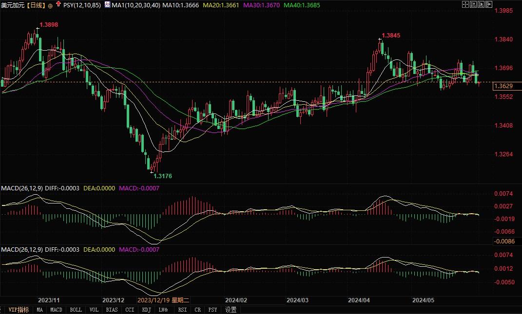 北京时间6月3日13:34,美元兑加元报1.3629/31