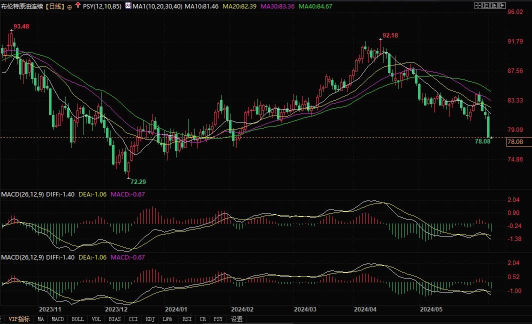 北京时间6月4日8:53,布伦特原油报78.08美元/桶