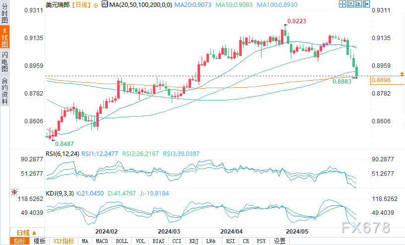 瑞士央行(Swiss National Bank)主席托马斯·乔丹(Thomas Jordan)表示,瑞郎走弱对通胀前景构成风险,此后瑞郎涨势强劲。瑞士央行是主要发达国家央行中第一个采取行动的,它已经在3月份下调了利率,这使得瑞士货币对七国集团货币贬值。