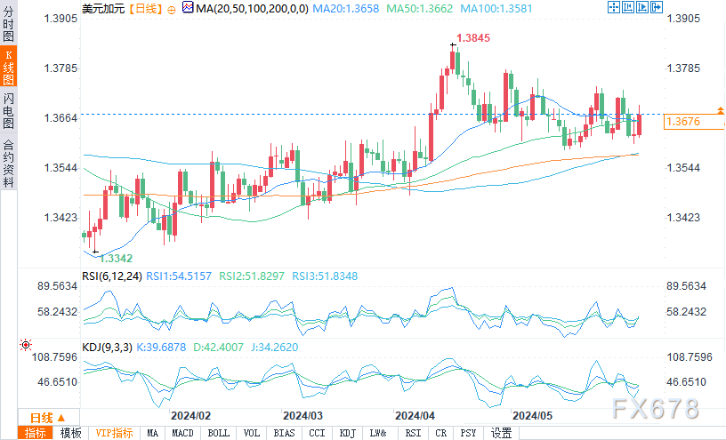 北京时间周三03:59,美元/加元汇率对在经过前三个交易日的震荡后走高,,报1.3675,涨幅0.36%。