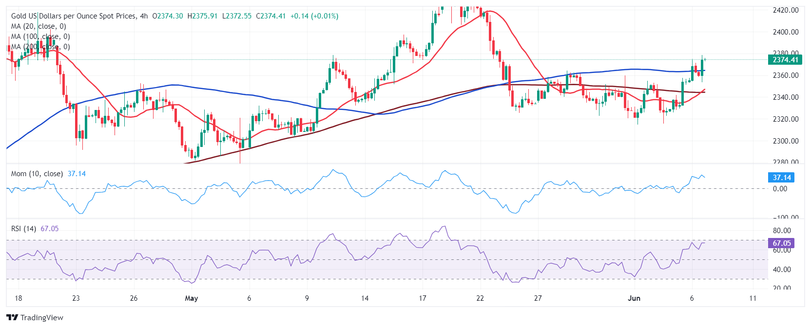 周五(6月7日)亚市盘中,现货黄金震荡走高,一度刷新近两周高点至2387.59美元/盎司,目前交投于2380.65美元/盎司附近。FXStreet首席分析师Valeria Bednarik撰文,对黄金技术前景进行分析。