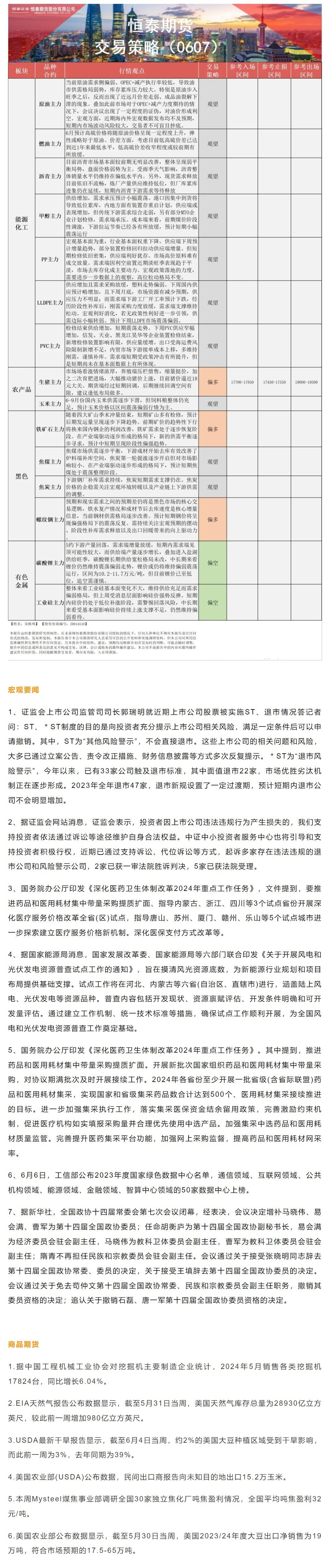 以下是恒泰期货今日早间交易策略,覆盖品种有:宏观分析、原油燃料油等能源化工、玉米生猪等农产品、黑色系如铁矿石焦煤焦炭螺纹钢、有色系如工业硅碳酸锂等。