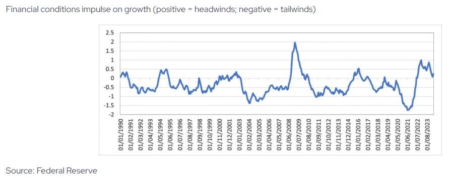 图2:货币政策相当中性(金融状况对经济增长的推动,正为逆风负为顺风)