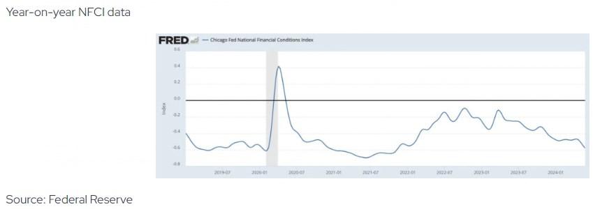 图1:相比过去几年金融状况宽松(同比新金融状况指数)