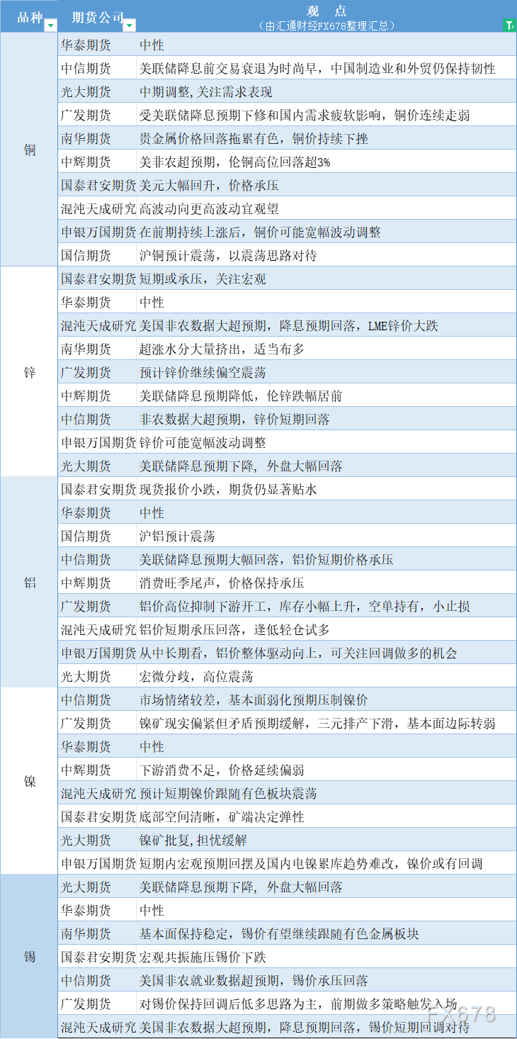 期货公司观点汇总一张图:6月11日有色系(铜、锌、铝、镍、锡等)