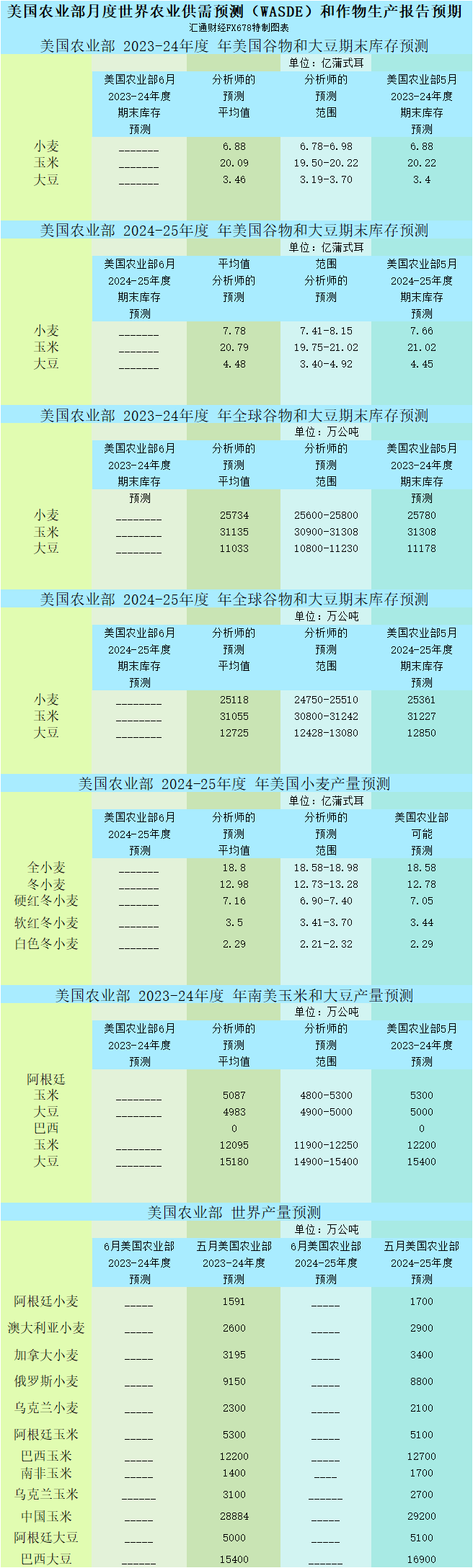 分析师普遍预计,USDA的6月报告将显示全球小麦、玉米和大豆供应量的预估较上个月有所下降。这一预测可能会对期货市场产生影响,尤其是在美国玉米带可能经历炎热干燥天气的情况下。