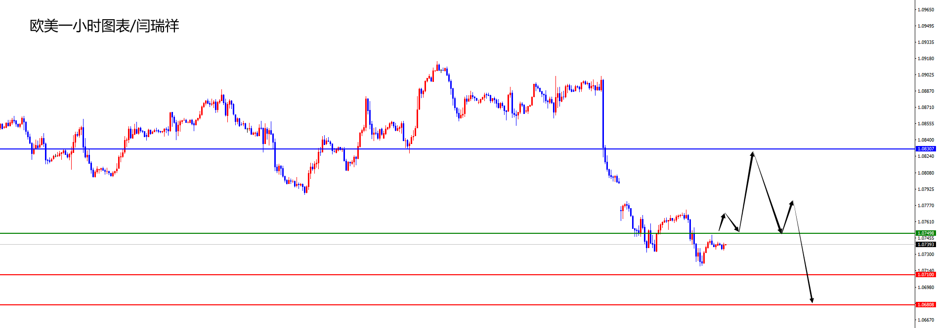 欧美1.0830-40区间空,防守50点,目标1.0750-1.0710-1.0680