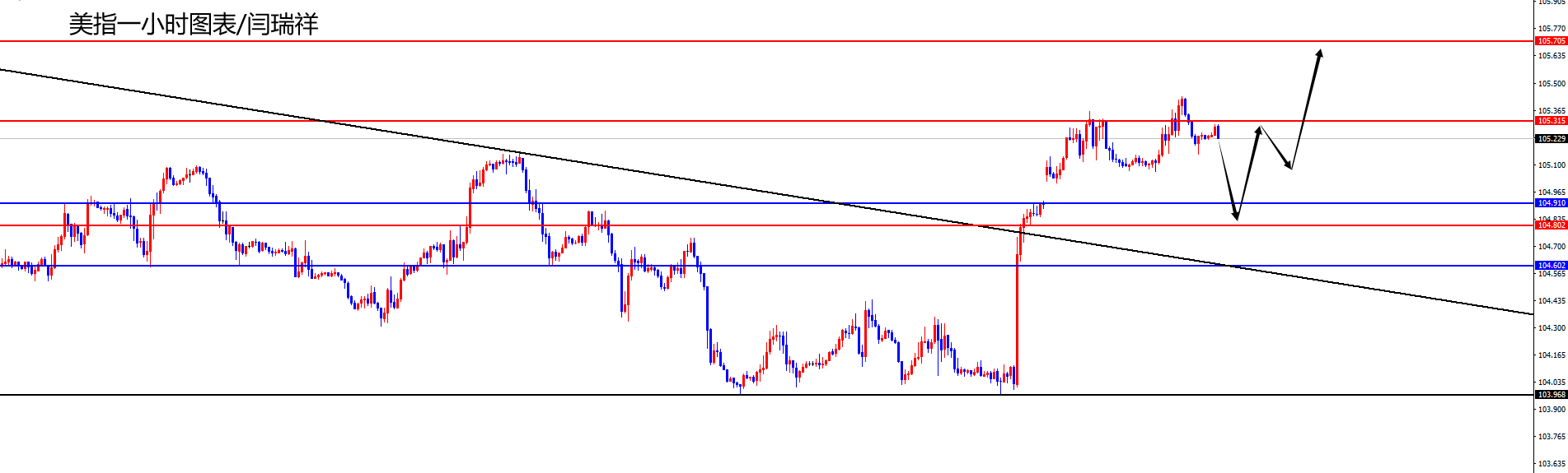 美指104.80-90区间多,防守5美金,目标105.30-105.70