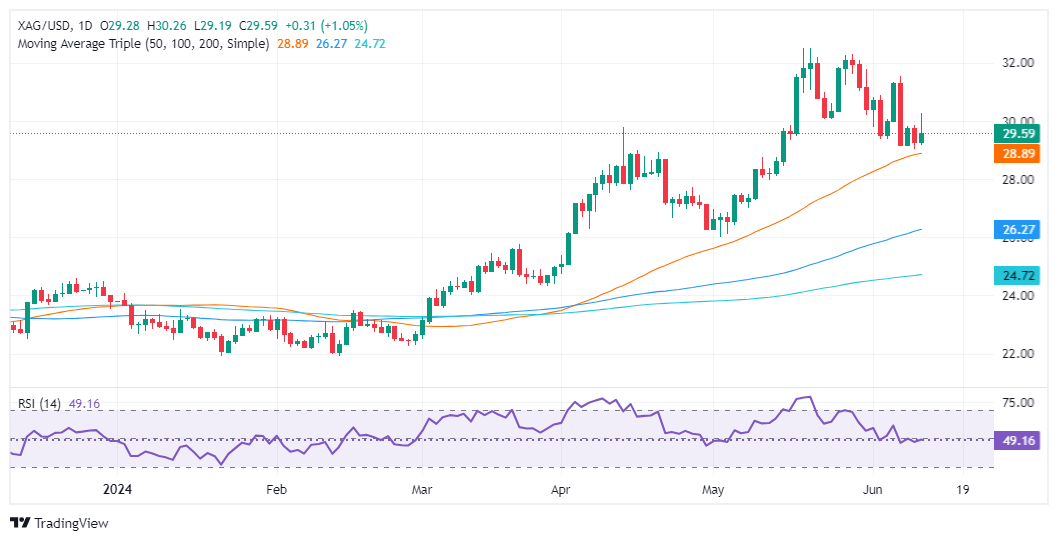 周四(6月13日)亚市早盘,现货白银短线突然大幅下挫,一度失守29.00关口至28.82美元/盎司,为5月15日以来新低,日内跌幅约2.95%。FXStreet分析师Christian Borjon Valencia最新撰文,对银价技术走势进行分析。