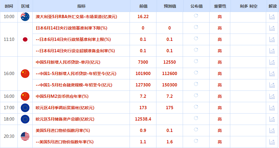 前日公布数据与消息: