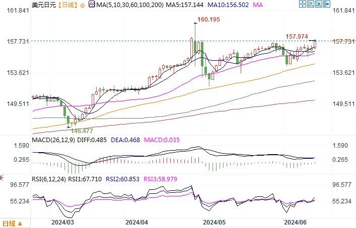 周四(6月13日),美元指数上涨0.49%报105.20,美元/日元尾盘上涨0.11%,收盘报157.02。周四的数据显示,5月美国生产者价格意外下降,总体生产者价格指数(PPI)在4月份环比上升0.5%后,上月下降了0.2%。核心PPI环比持平,4月增长0.5%。周三公布的5月美国消费者物价指数(CPI)低于经济学家预期,曾引发美元遭到大幅抛售。但对通胀降温的乐观情绪尚不足以压制美元。这当中最主要的原因是美联储官员周三出人意料地预测今年只会降息一次,并将对降息开始时间的预测推迟到可能最晚12月。美联储在周三会议结束时采取的这种鹰派基调令美元反弹。在利差保持较大差距的情势下,日元自然继续要受到影响而保持着弱势的局面。现在就看周五日本央行会议上,日本央行是否明确考虑削减债券购买量,为缩减近5万亿美元的资产负债表迈出关键的第一步。若真能落实缩债,日元空头有望发生实质性的转变。否则日元仍要继续维持着低位震荡的走势格局。日线图上,美元/日元继续处于窄幅盘整之中,上方初步阻力暂时在157.40附近,下方支撑在155.00附近。日本央行会议出炉结果之前,预料汇价将波动于上述区间内。