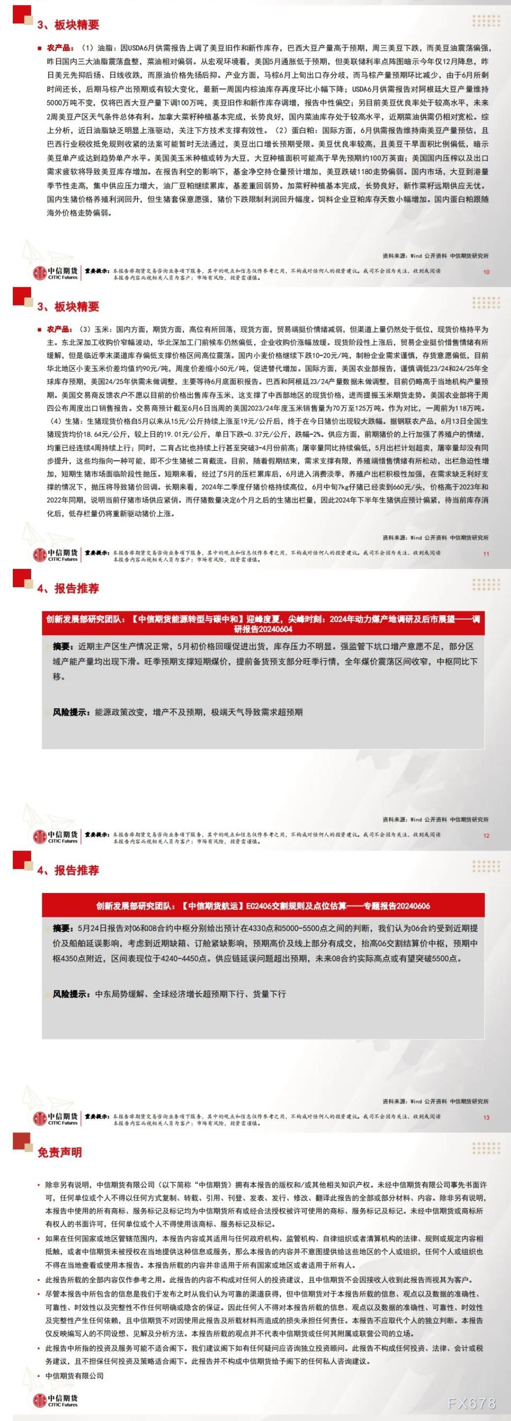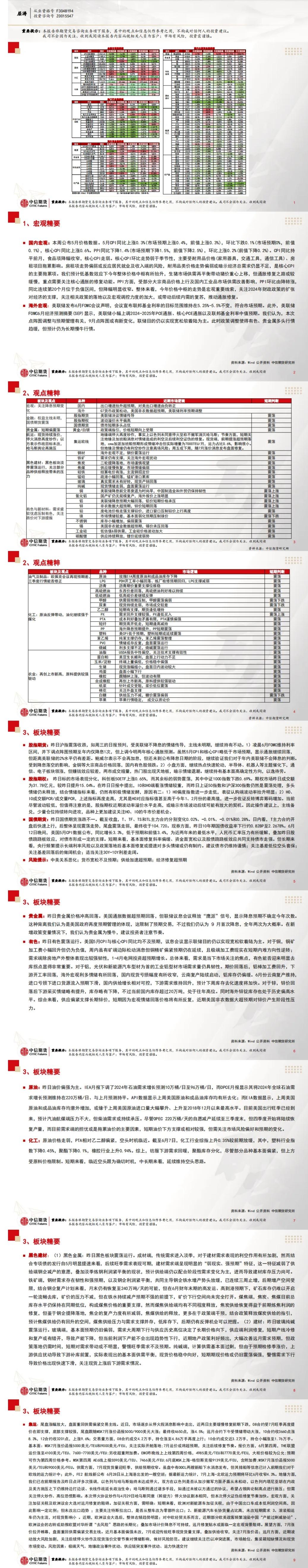以下为中信期货今日晨报对国内外宏观、股指、国债、贵金属、原油能源化工、有色金属、螺纹钢材焦炭黑色系玻璃纯碱等建材、玉米生猪油脂蛋白粕等农产品等期货的操作建议和提醒。