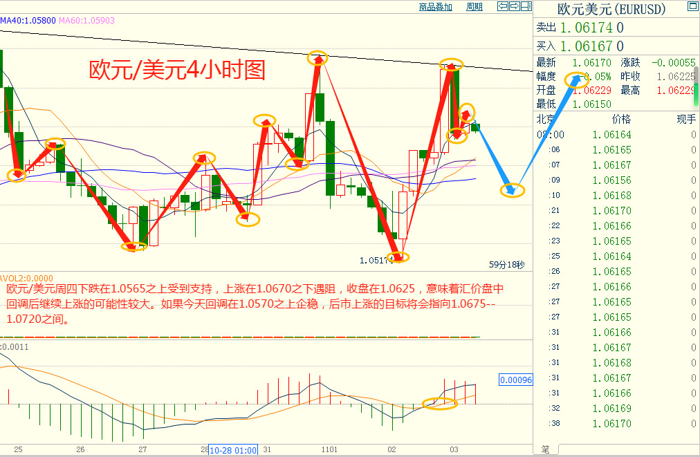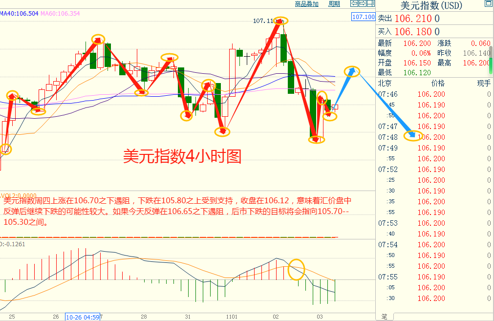 美指周四上涨在106.70之下遇阻,下跌在105.80之上受到支持,意味着美元短线上涨后有可能保持下跌的走势。如果美指今天上涨在106.65之下遇阻,后市下跌的目标将会指向105.70--105.30之间。今天美指短线阻力在106.60--106.65,短线重要阻力在107.05--107.10。今天美指短线支持在105.70--105.75,短线重要支持在105.30--105.35。