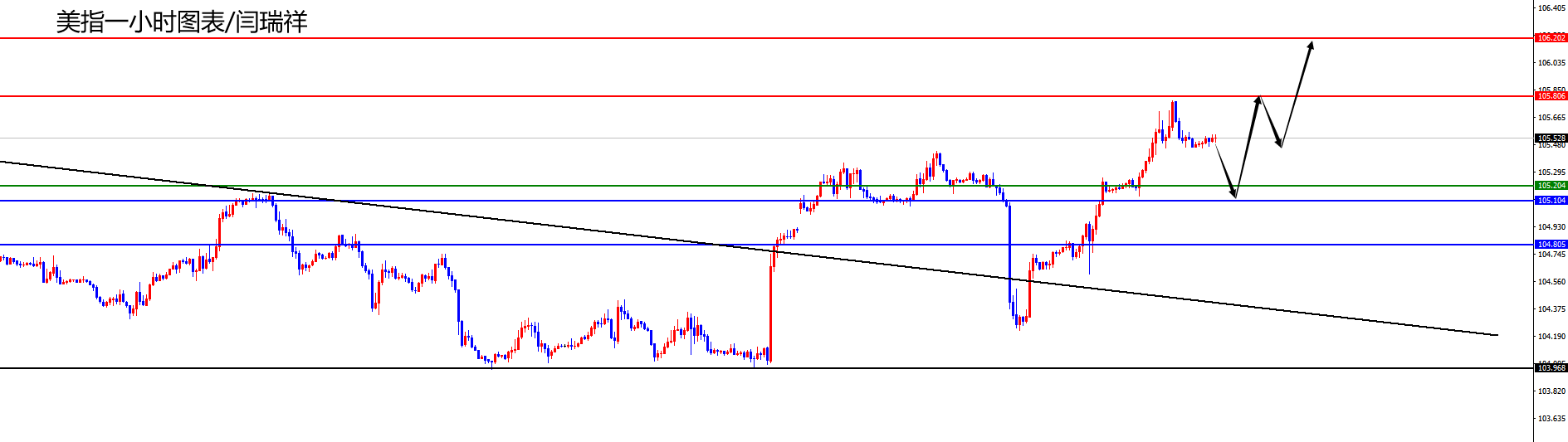 美指105.10-20区间多,防守5美金,目标105.80-106.20