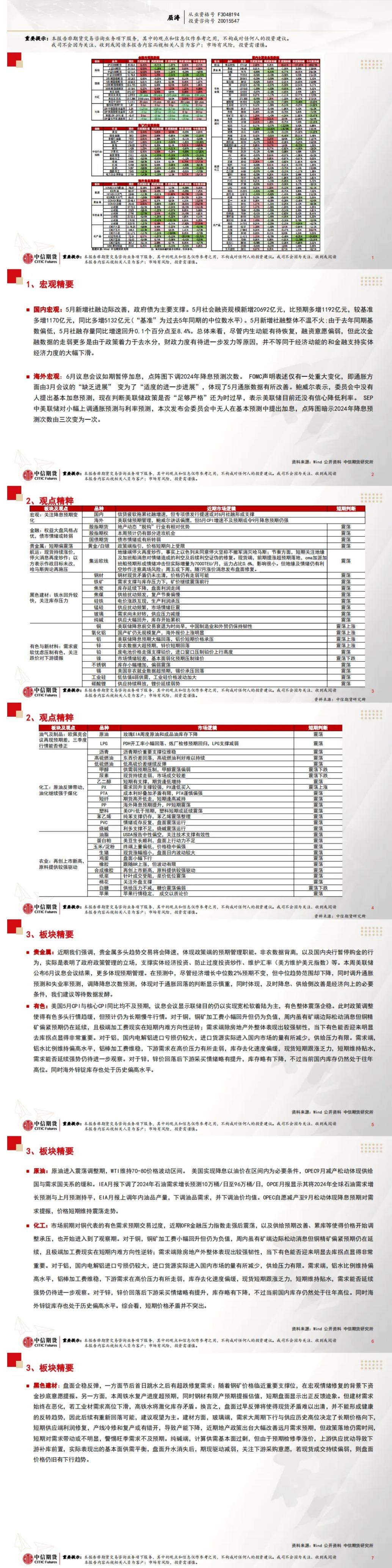 以下为中信期货今日晨报对宏观、贵金属、原油能源化工、有色金属、黑色系等建材、生猪等农产品等期货的操作建议和提醒。