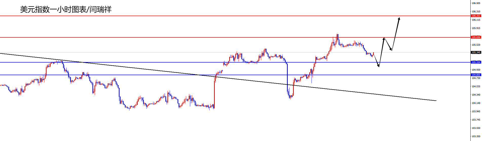 美指104.90-105区间多,防守5美金,目标105.70-106.20