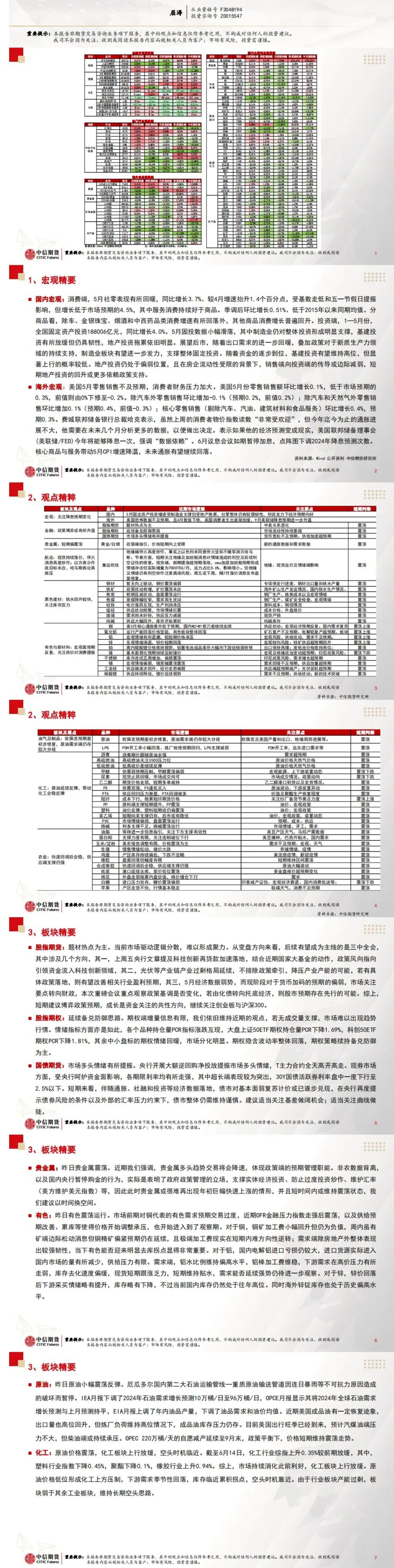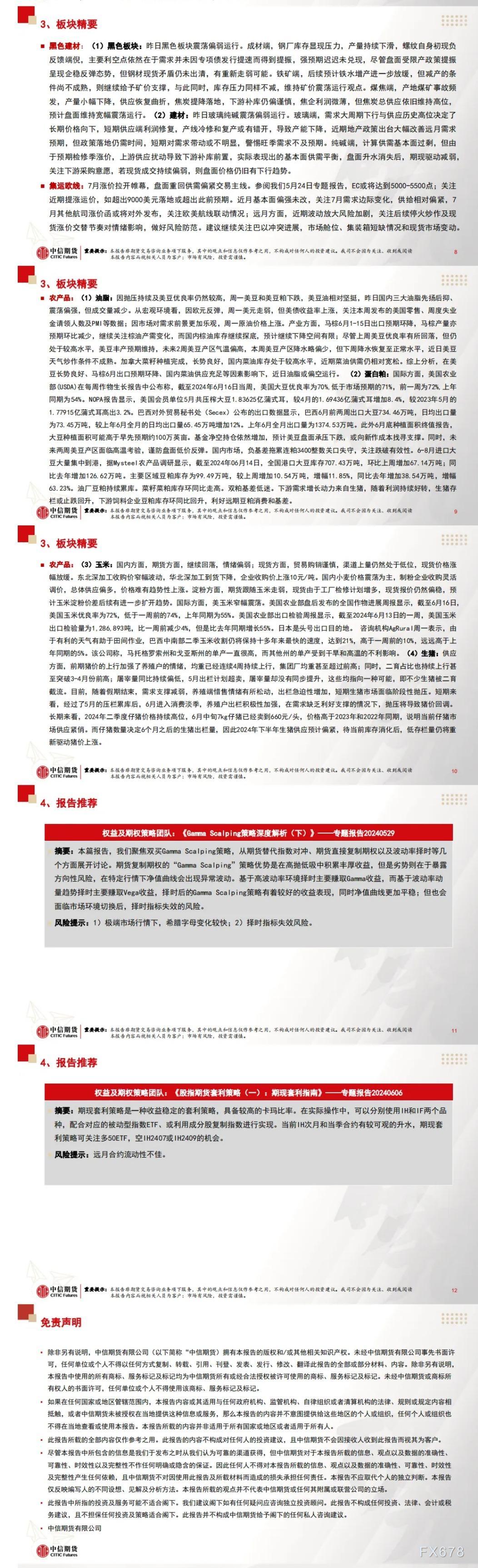 以下为中信期货今日晨报对股指、国债、贵金属、原油能源化工、有色金属、螺纹钢材焦炭黑色系玻璃纯碱等建材、玉米生猪油脂蛋白粕等农产品等期货的操作建议和提醒。