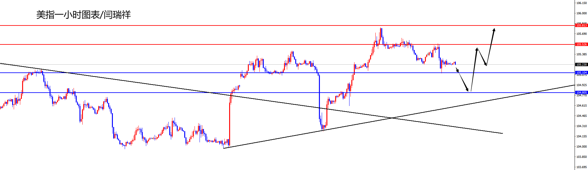 美指104.75-85区间多,防守5美金,目标105.50-105.80