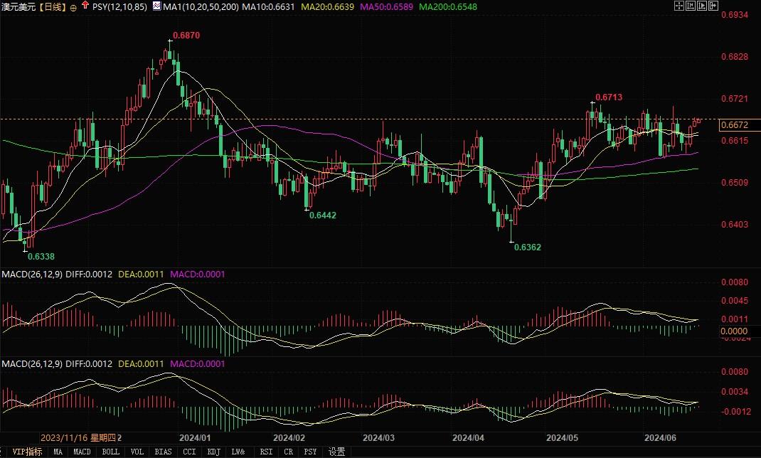 北京时间6月20日11:20,澳元兑美元报0.6672/73