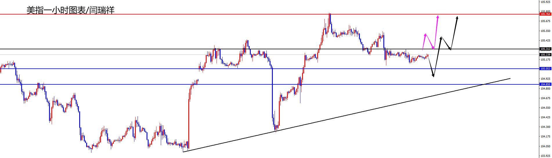 美指104.90-105区间多,防守5美金,目标105.50-105.80